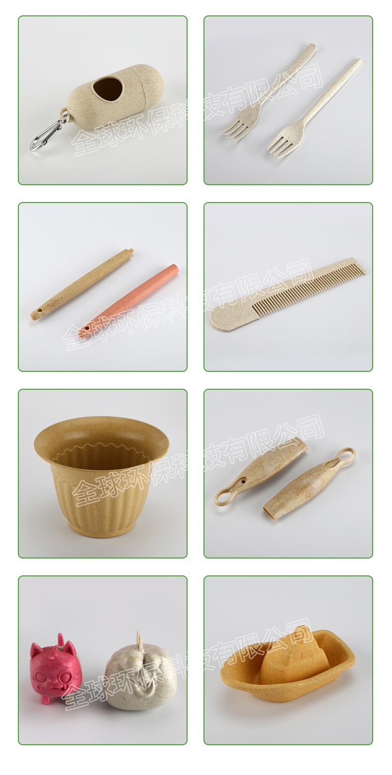 材料特性:1l)生物基塑料;2)褐色麥纖維麻點特征;3)天然植物香味